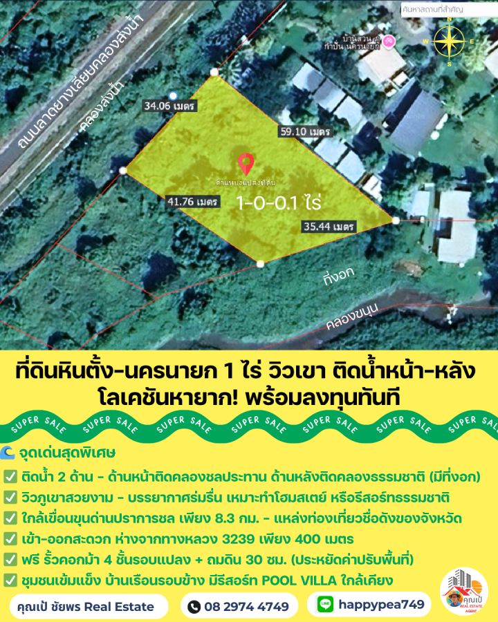 📞 สนใจนัดชมที่ดิน / สอบถามข้อมูลเพิ่มเติม: โทร: 08 2974 4749 (คุณเป้ ชัยพร) Line: happypea749