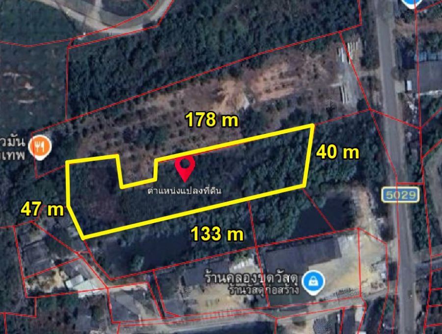 หน้ากว้างติดถนนเส้น5029 40 เมตร X ยาว 178 เมตร
