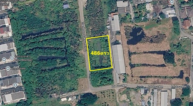 ขายที่ดินเปล่า ขนาด486ตรว ใกล้รถไฟฟ้าสายสีเหลืองศรีนครินทร์ 38และซีคอนสแควร์ ศรีนครินทร์ ซอยศรีนครินทร์36 เขตสวนหลวง กทม.