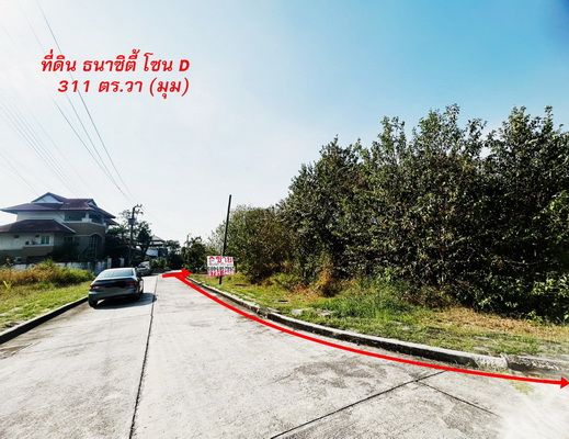 - ที่ดิน อยู่ใน ม. ธนาซิตี้ โฉนดที่ดิน 2 แปลงติดกัน รวม 311 ตร.วา แปลงมุม ติดถนน 2 ด้าน