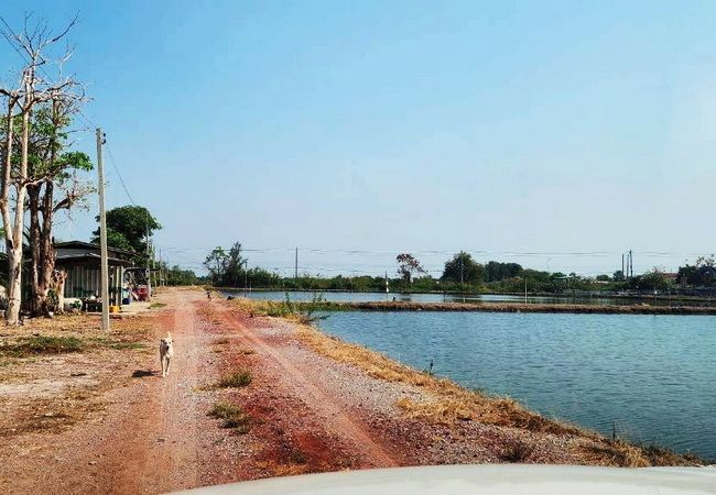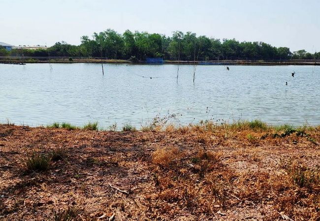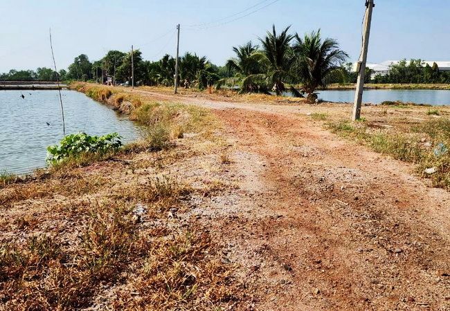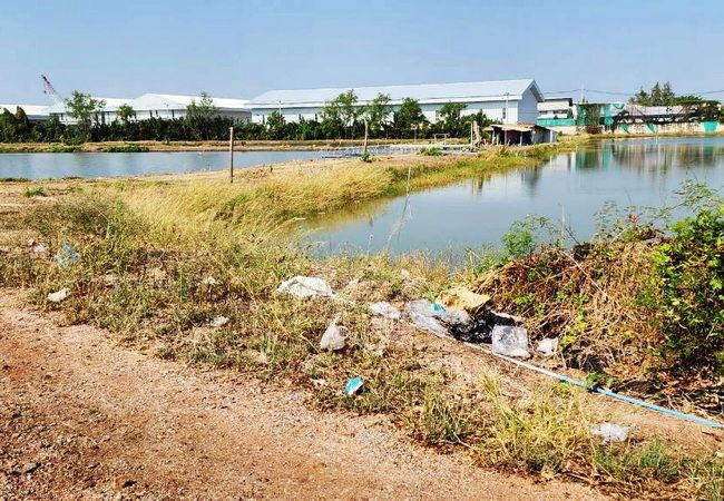 – ติดถนนบางจะเกร็ง หน้ากว้าง 220 เมตร เป็นบ่อเลี้ยงปลา