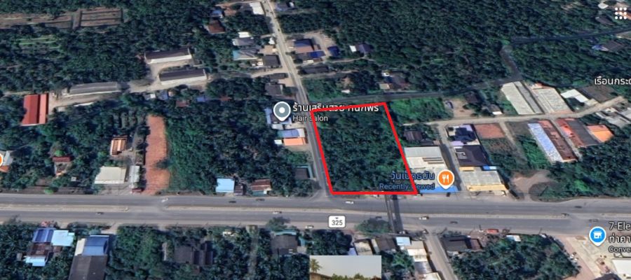 รูปทรงที่ดิน: หน้ากว้างขนาบถนนและคูน้ำ (กว้างซ้าย 65.46 ม. / กว้างขวา 58.59 ม.)