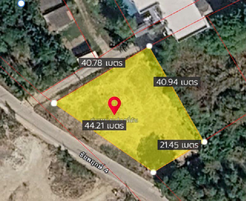 หน้ากว้างติดถนนคอนกรีต 44 เมตร X ยาว 40 เมตร