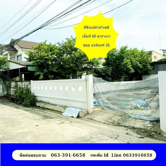 ขายที่ดินทำเลดี 60 ตารางวา ซอย นวมินทร์ 26 เข้าซอย 300 เมตร ที่ดินผังสีส้ม ย.6-17