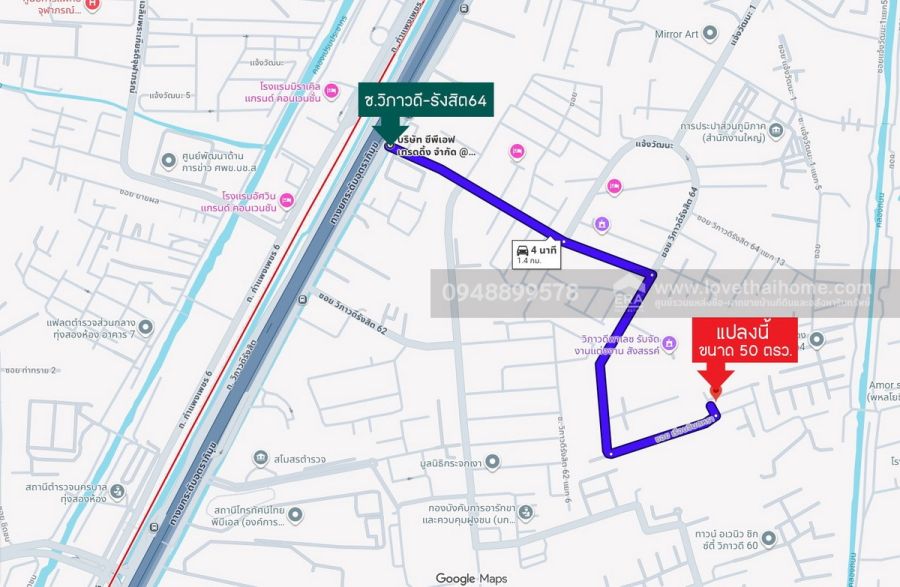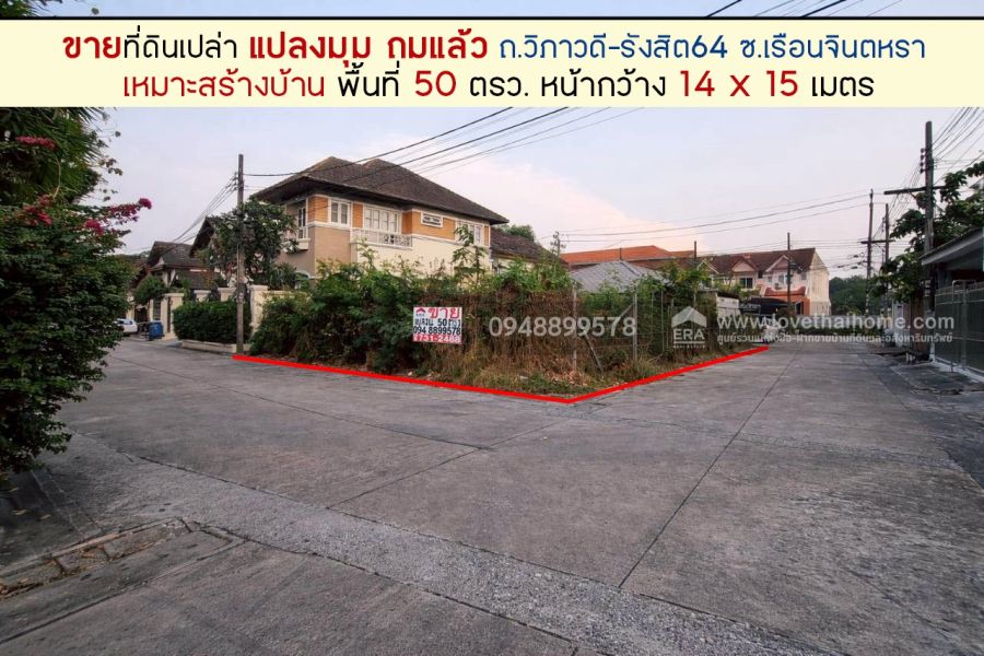 - ที่ดินเปล่า พื้นที่ 50 ตรว. ซอยเรือนจินตหรา ถนนวิภาวดี-รังสิต64