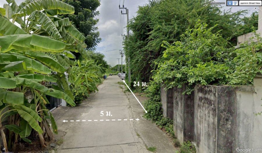 สี่เหลี่ยมผืนผ้า หน้ากว้าง 24 เมตร ลึก 21 เมตร ผังสีแดง หน้าที่ดินเป็นถนนคอนกรีตกว้าง 5 เมตร เหมาะสำหรับที่อยู่อาศัย หรือ สร้างอาคารเพื่อพัฒนาทางธุรกิจ