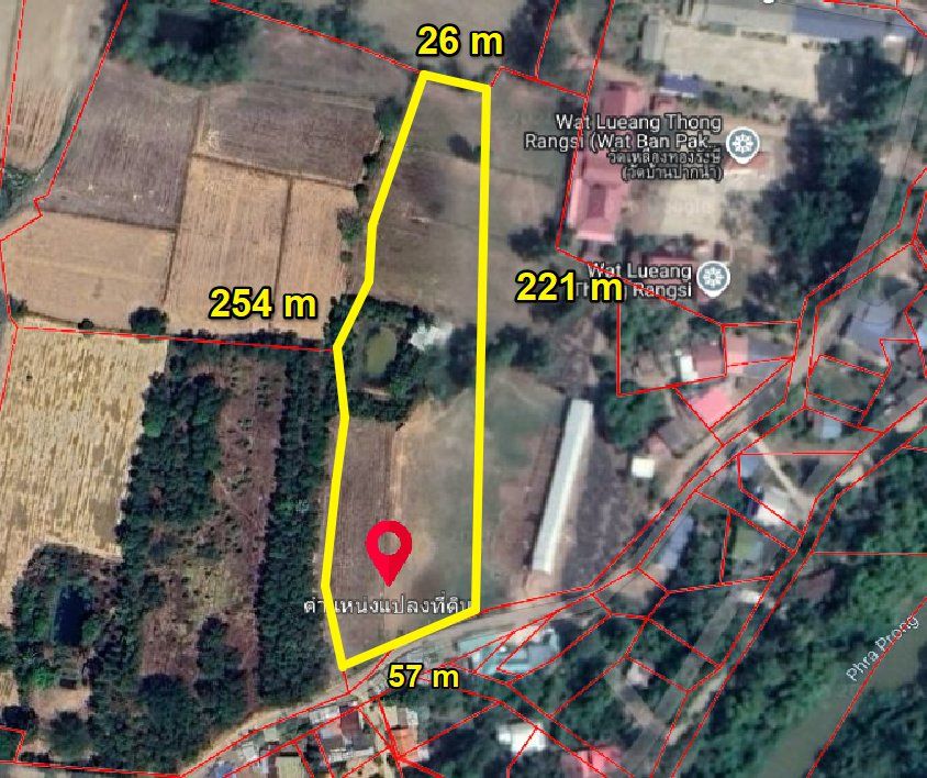 หน้ากว้างติดถนนคอนกรีต 57 เมตร X ยาว 254 เมตร