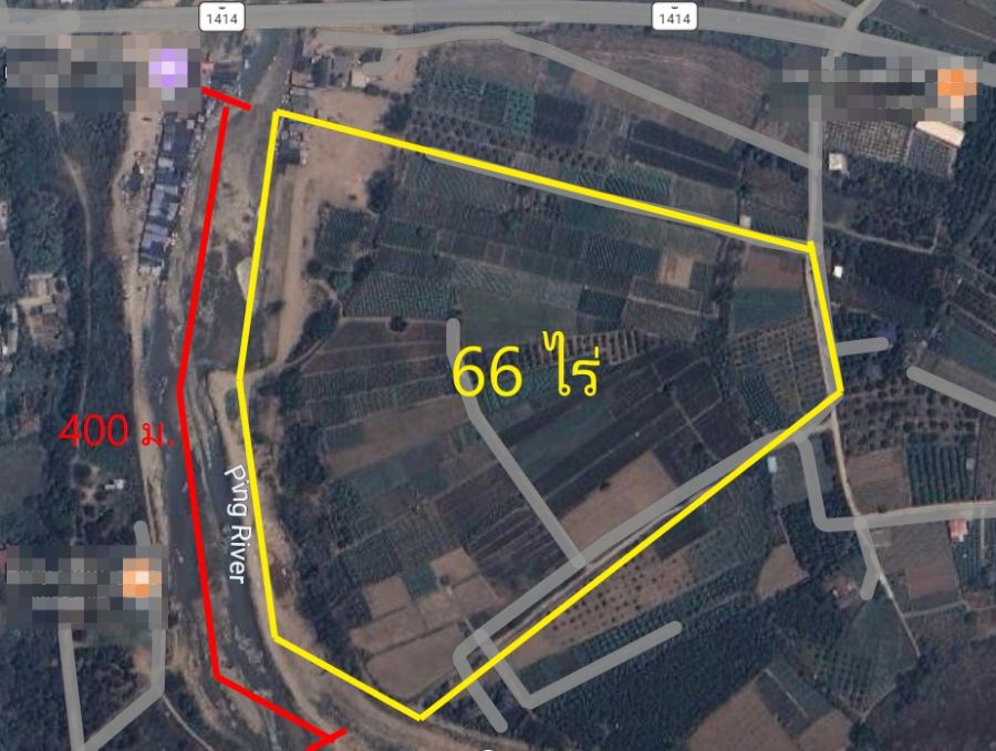# พื้นที่เป็นพัด หน้ากว้างติดน้ำปิงยาว 400 เมตร++