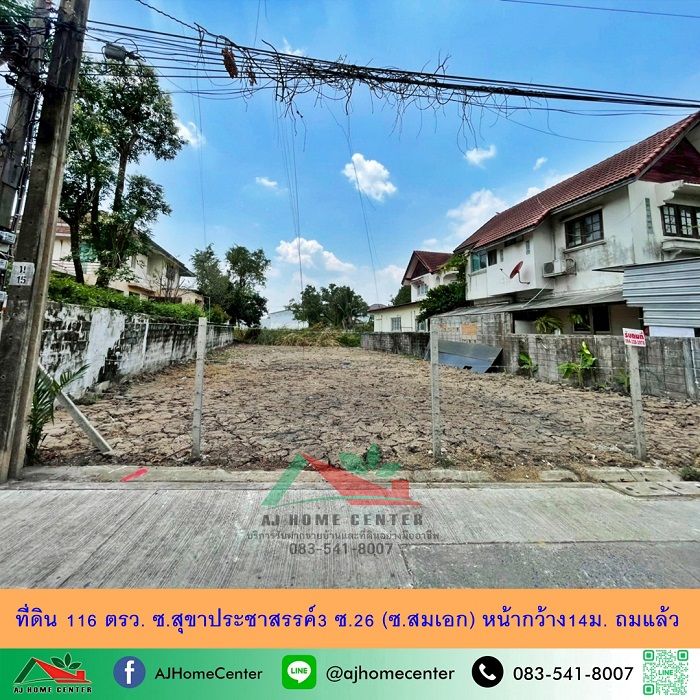 ขายที่ดิน116ตรว. ถมแล้ว ผังสีเหลือง หน้ากว้าง14ม. ซ.สุขาประชาสรรค์3 ซ.26 (ซ.สมเอก)