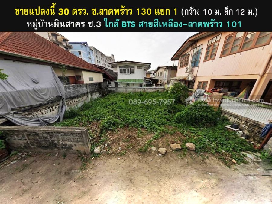 ขายที่ดินเปล่า 30 ตรว. หมู่บ้านมินสาคร ซ.3 ถ.ลาดพร้าว 130 แยก 1 ใกล้ BTS สายสีเหลือง-สถานีลาดพร้าว 101 จากถนนใหญ่เข้าไป 300 เมตร ทำเลดีเหมาะสำหรับสร้างบ้านอยู่อาศัย