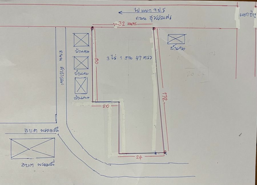 หน้ากว้าง 32 เมตร ที่ดินจริงยังไม่ได้ถม