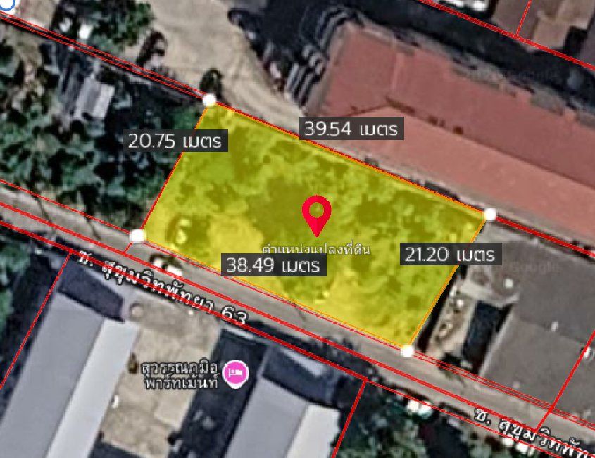 หน้ากว้างติดถนนสุขุมวิทพัทยา63 38 เมตร X ยาว 21 เมตร