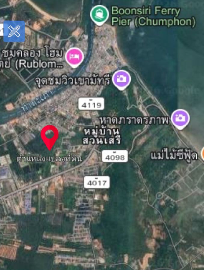 ขายที่ดินโฉนด3ไร่1งาน91ตรว.รวม4,500,000บาทใกล้ PT 5ปากน้ำชุมพร ต.ปากน้ำอ.เมืองชุมพรจ.ชุมพร
