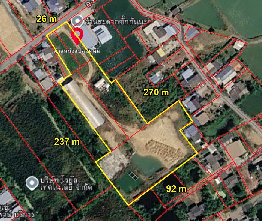 หน้ากว้างติดถนนลาดยาง 26 เมตร X ยาว 270 เมตร
