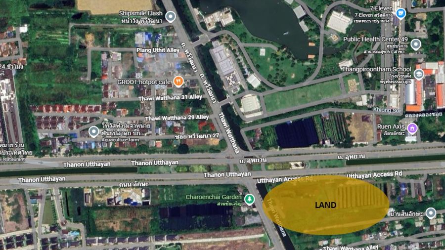 ที่ดินตั้งอยู่ในย่านอุทยาน (อักษะ) โซนที่อยู่อาศัยคุณภาพ บรรยากาศสงบ รายล้อมด้วยบ้านพักอาศัยระดับกลาง-บน เหมาะสำหรับพัฒนาโครงการที่อยู่อาศัยหรือการลงทุนระยะยาว