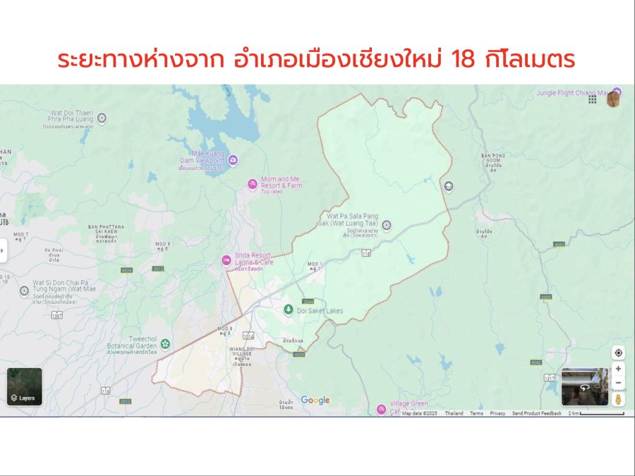 ที่ดินแปลงขนาดใหญ่ในโซนศักยภาพของเชียงใหม่ เหมาะสำหรับการพัฒนาโครงการเชิงอนุรักษ์ระดับไฮเอนด์ เช่น Wellness Resort, Eco Resort, Luxury Retreat, หรือโครงการเกษตรกรรมมูลค่าสูง (Agri-Development)
