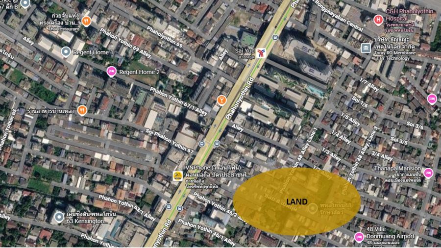 ที่ดินตั้งอยู่ในย่านพหลโยธิน ซึ่งเป็นหนึ่งในทำเลสำคัญของกรุงเทพฯ รายล้อมด้วยแหล่งที่อยู่อาศัย อาคารสำนักงาน และโครงการพัฒนา เหมาะสำหรับพัฒนาโครงการที่อยู่อาศัยหรือเชิงพาณิชย์ในระยะยาว