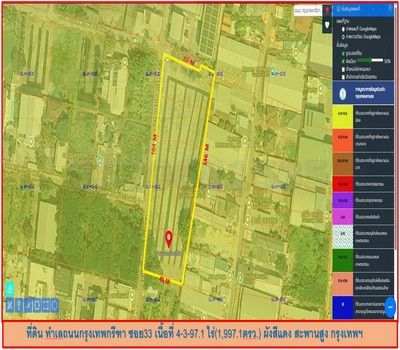 ที่ดิน ทำเลถนนกรุงเทพกรีฑา ซอย33 เนื้อที่ 4-3-97.1 ไร่ ผังสีเหลือง สะพานสูง กรุงเทพมหานคร