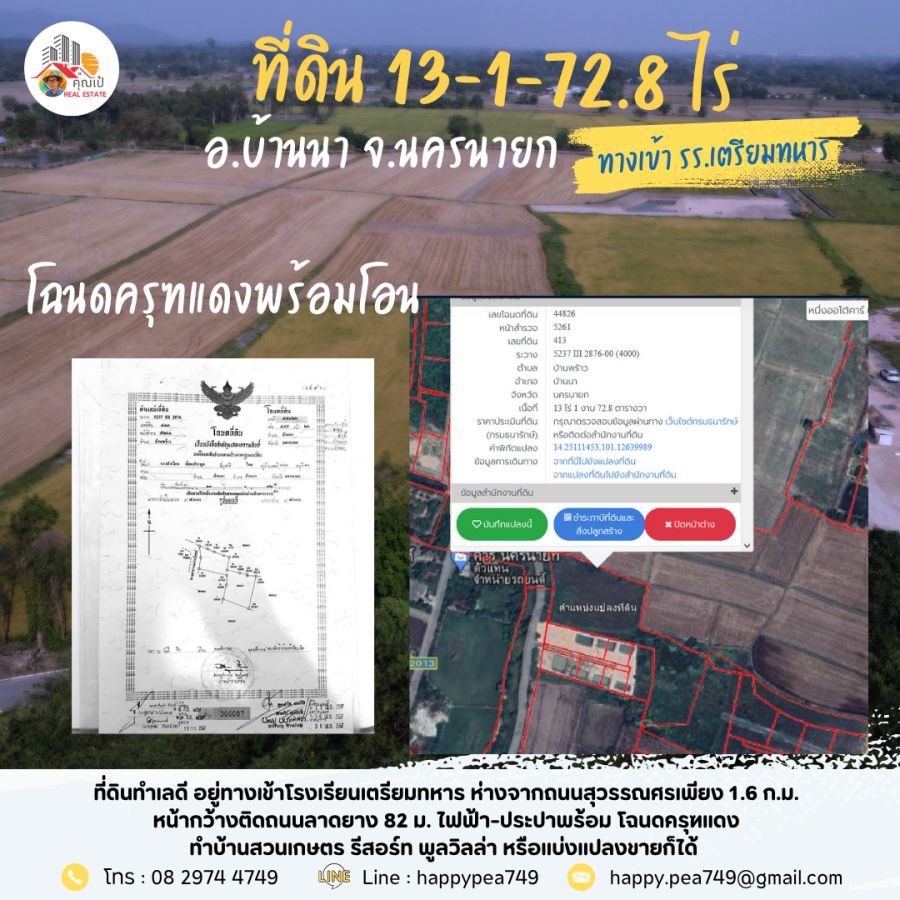 ขนาดที่ดิน: 13-1-72.8 ไร่ (ที่นา ยังไม่ได้ถม)