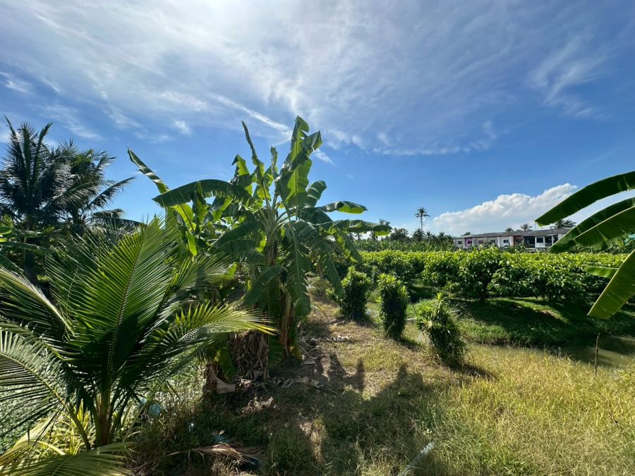 - ลักษณะที่ดินเป็นร่องสวน ระดับต่ำกว่าถนนประมาณ 1 เมตร
