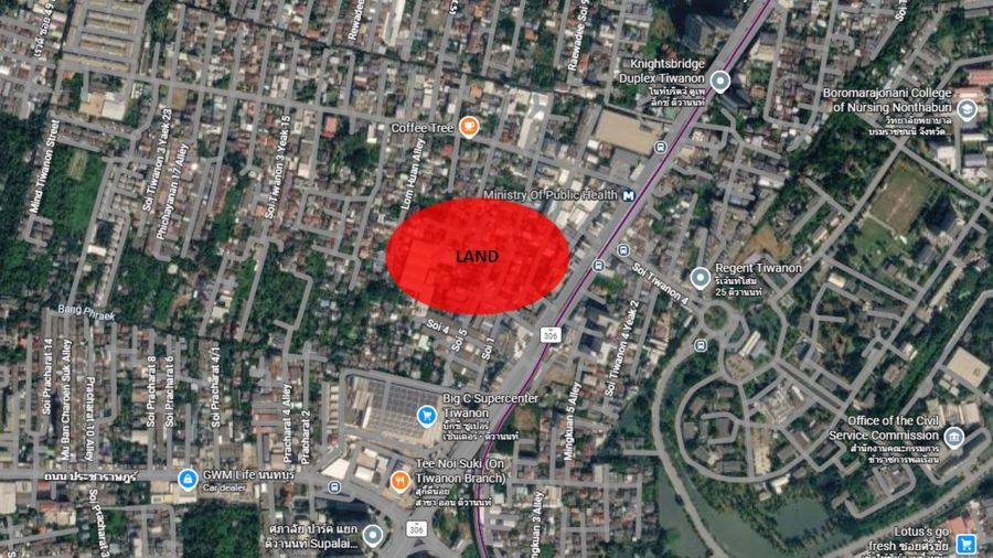 ที่ดินตั้งอยู่ในแนวถนนติวานนท์ ซึ่งเป็นเส้นทางหลักที่เชื่อมต่อพื้นที่ระหว่างกรุงเทพฯ และนนทบุรี รายล้อมด้วยแหล่งที่อยู่อาศัยและชุมชน เหมาะสำหรับพัฒนาโครงการเพื่ออยู่อาศัยหรือเชิงพาณิชย์ รวมถึงการถือครองเพื่อสร้างมูลค่าเพิ่มในอนาคต