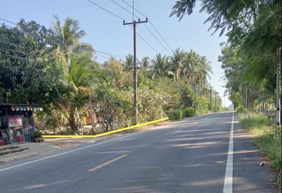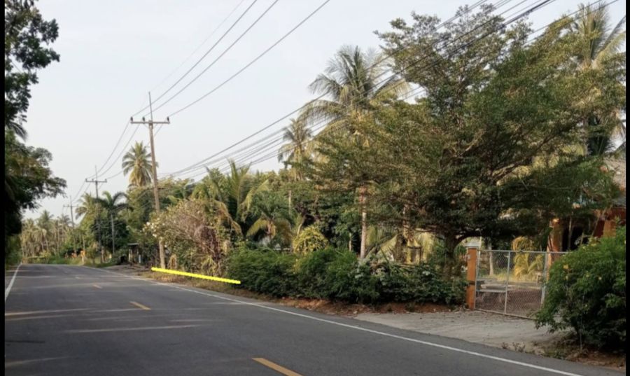 ขายที่ดิน 100 ตารางวา ด้านหน้าติดถนนลาดยาง ด้านข้างติดถนนซอย ใกล้สถานีรถไฟโคกตาหอม ใกล้ทะเล 1 กม