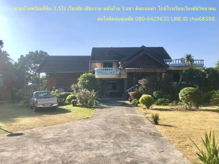 ขายบ้านวิวเขา เนื้อที่ 3.5ไร่ อ.เวียงชัย จ.เชียงราย บ้าน 3หลัง ห่างตัวเมืองเชียงราย 10กม.ห่างตลาด ที่ว่าการอำเภอเวียงชัย 1กม.มีพื้นที่ว่างหลังบ้านวิวเขา สร้างบ้านเพิ่ม หรือปลูกต้นไม้ได้ หน้ากว้าง 42เมตร ลึก 115เมตร ราคา 6.5 ล้าน สนใจสอบถามรายละเอียด ติดต่อเฮียชัย 080-6429630 LINE ID chai68588