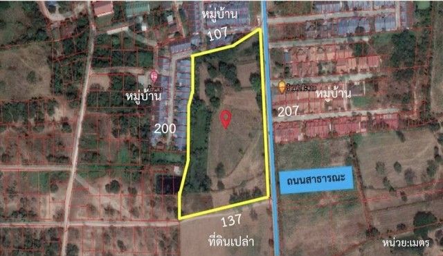 หน้ากว้าง 207 เมตร ลึก 137 เมตร รอบๆ ที่ดินเป็นชุมชน บ้านเดี่ยว