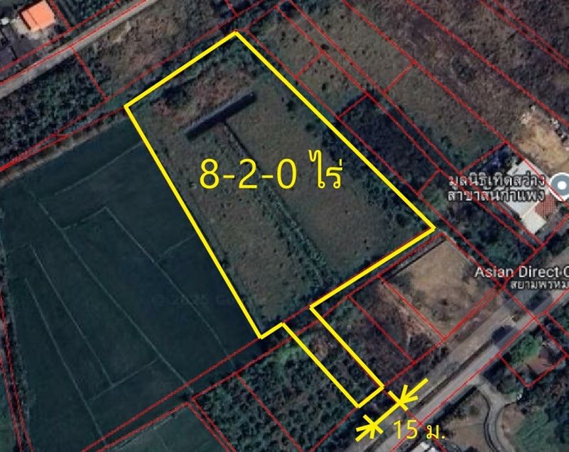 # พื้นที่เป็นสี่หลี่ยม หน้ากว้างติดถนนลาดยาง 15 เมตร