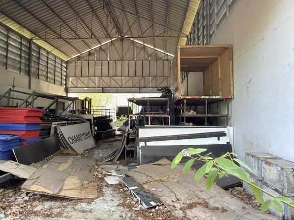 ในที่ดินมีตัวโกดังเหล็ก 2 หลัง หน้ากว้าง 14 เมตร ลึก 40 เมตร มีรั้วรอบที่ดิน