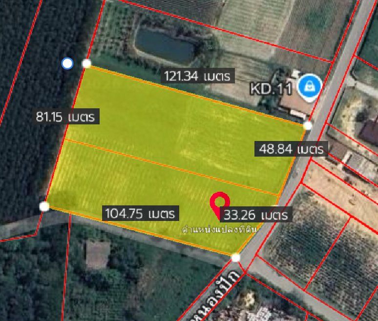 หน้ากว้างติดถนนลาดยาง 83 เมตร X ยาว 121 เมตร