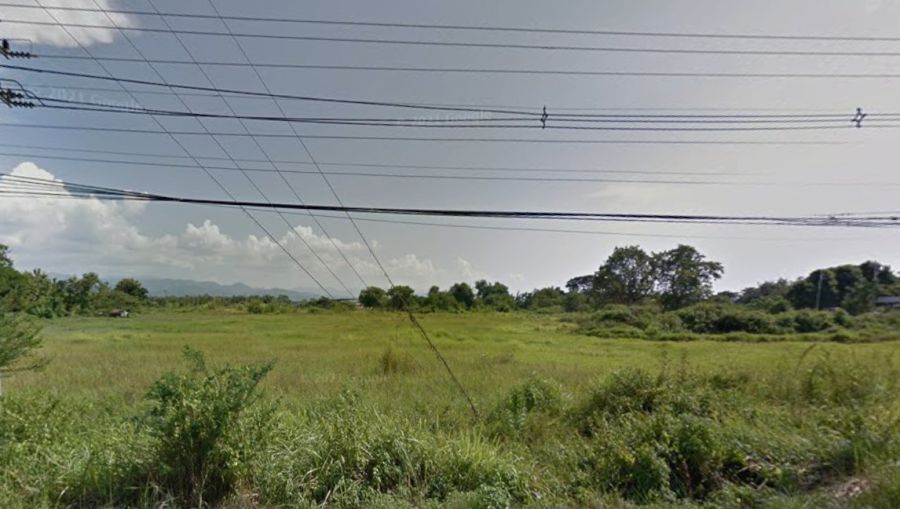 # พื้นที่เป็นเหลี่ยมสวย หน้ากว้างติดถนน 160 เมตร ลึกประมาณ 350 เมตร