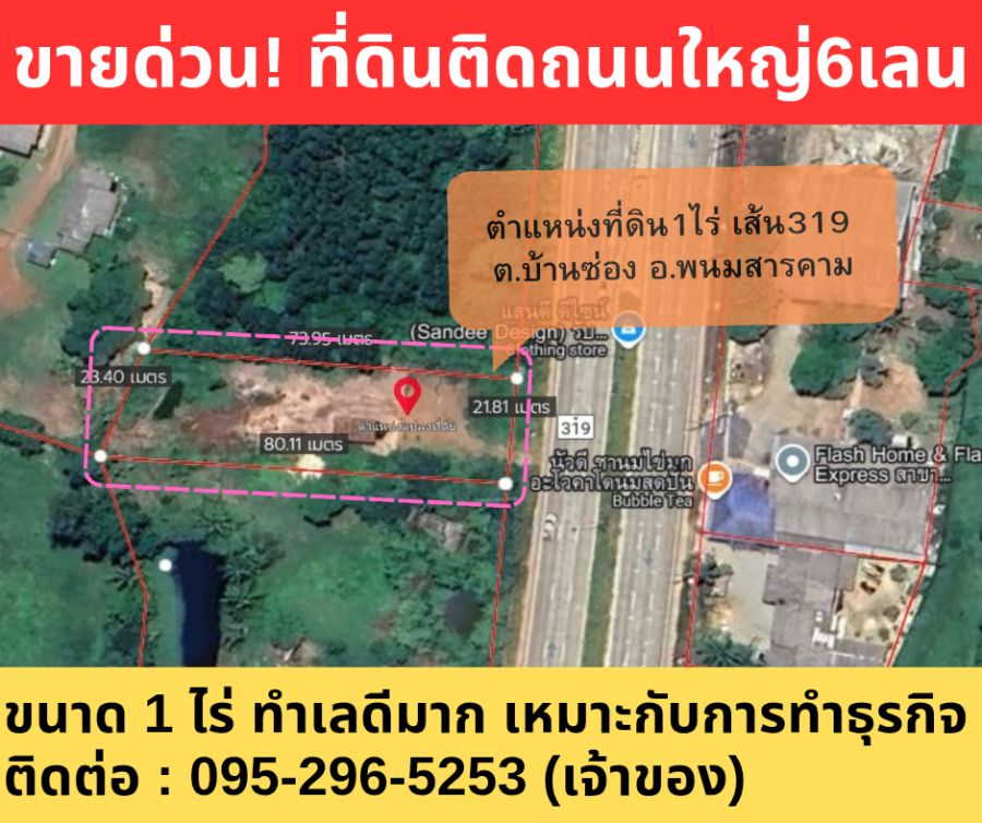 เนื้อที่ 🌳 : 1ไร่ หน้ากว้าง 21 เมตร ลึก80 เมตรถมแล้วบางส่วนด้านหน้าเสมอถนน ประหยัดครึ่งแสน
