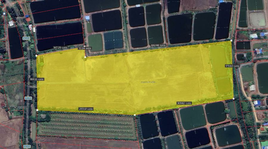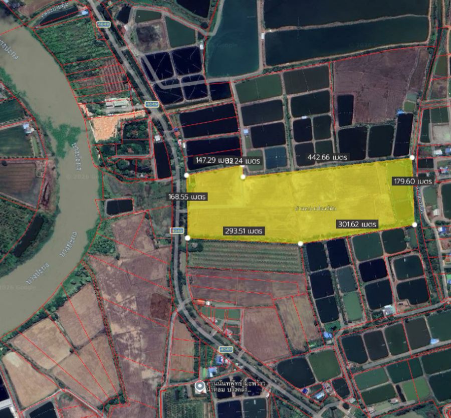 - หน้ากว้างติดถนน 168เมตร ท้ายที่กว้าง 180เมตร จากหน้าที่ถึงท้ายที่ ลึกสุด ประมาณ 600เมตร
