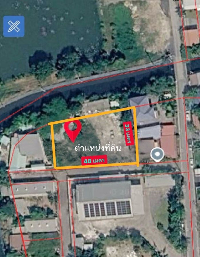 หน้ากว้างติดถนน 48 เมตร ลึก 33 เมตร