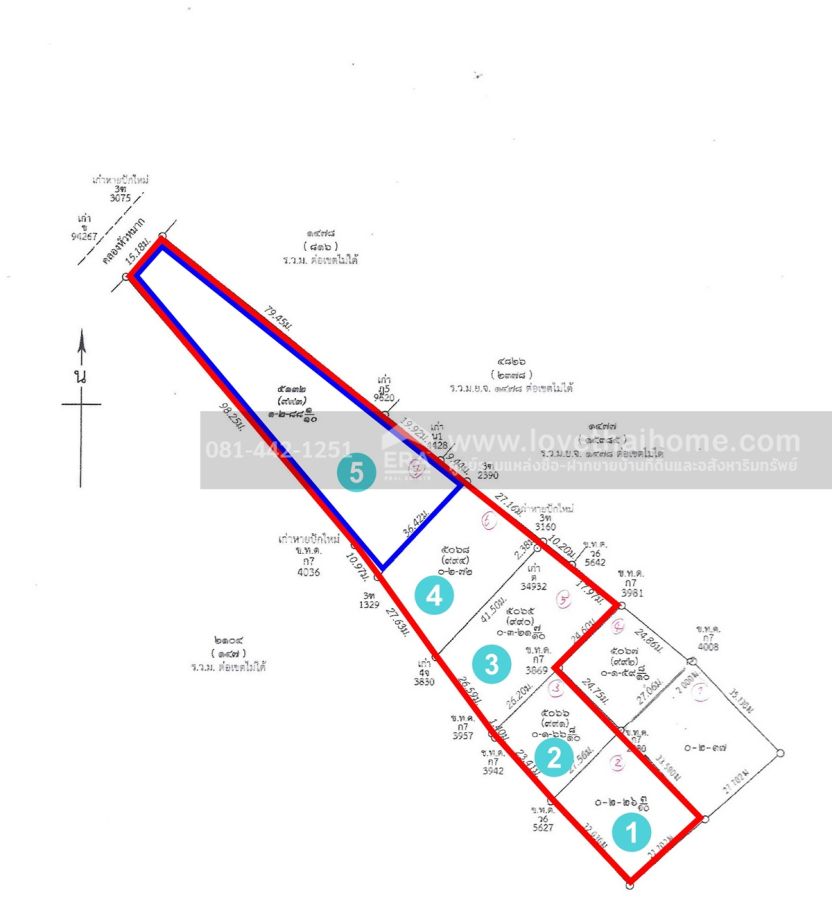 - ที่ดินเปล่า พื้นที่ 2-1-87 ไร่ (987 ตรว.) หน้ากว้าง 36 เมตร ลึก 79 เมตร มีหลายแปลงแบ่งขาย