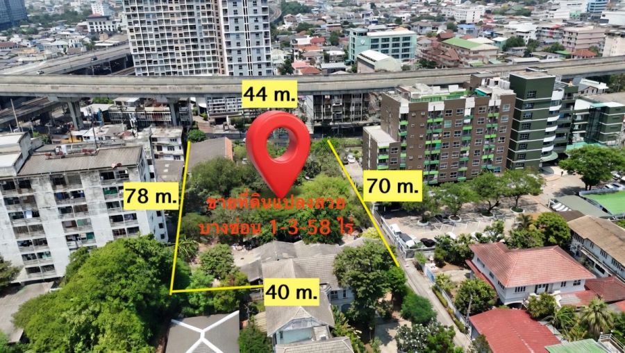 ขายที่ดิน ติดรถไฟฟ้า บางซ่อน 1-3-58 ไร่ ผังสีน้ำตาล ย8 หน้ากว้างติดถนน 2 ด้าน