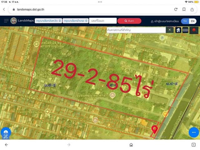 ขายถูกที่ดินดอนเมือง 29-2-85 ไร่ (11,885 ตรว.) ตรงข้ามสนามบินดอนเมืองเพียง 500 เมตร และ ใกล้รถไฟฟ้าสายสีแดง สถานีดอนเมือง เพียง 650 เมตร ที่ดินแปลงนี้อยู่ในย่านความเจริญของดอนเมือง เหมาะสำหรับพัฒนาทำโครงการหมู่บ้านจัดสรร คอนโดมิเนียม โฮมออฟฟิศ โรงแรม เซอร์วิสอพาร์ทเม้นท์ ดอนเมือง กรุงเทพฯ