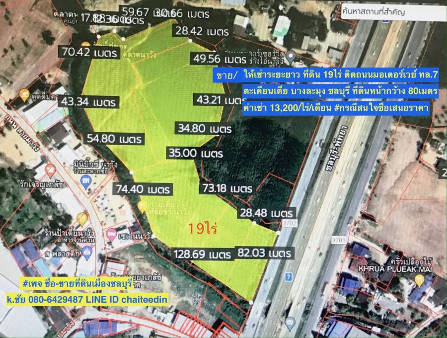 ขายที่ดินติดถนนคู่ขนานมอเตอร์เวย์ (7) เนื้อที่ 19 ไร่ หน้ากว้าง 82เมตรผังเมือง EEC สีเหลืองอ่อน ตำบลตะเคียนเตี้ย อำเภอบางละมุง จังหวัดชลบุรี ใกล้นิคมอุตสาหกรรมโรจนะแหลมฉบัง ทำเลเหมาะพัฒนาเป็นโกดัง,คลังสินค้า ลานจอด ราคาไร่ละ 3.7 ล้าน ราคาต่อรองได้ สนใจติดต่อคุณชัย 080-6429487 LINE ID chaiteedin เพจ ซื้อ-ขายที่ดินเมืองชลบุรี