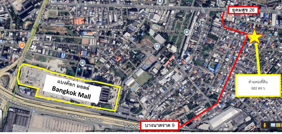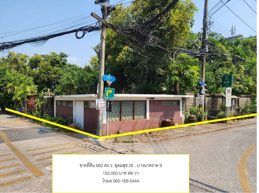 ที่ตั้ง : ถนนอุดมสุข ซอย26 (สุขุมวิท 103) ติดถนน 3 ด้าน ถนนด้านหน้า กว้างประมาณ 8 เมตร