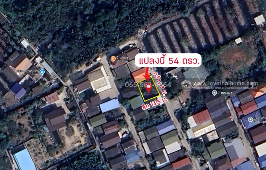 - ที่ดิน 2 แปลงๆละ 27 ตรว. 2 แปลงติดกัน หน้ากว้าง 16 เมตร ลึก 13.5 เมตร แบ่งขายได้