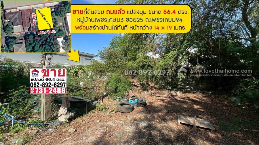 - ที่ดินเปล่าแปลงมุม สวย หมู่บ้านเพชรเกษม3 ซอย25 ถนนเพชรเกษม94 ขนาด 66.4 ตารางวา ถมแล้ว พร้อมสร้างบ้านได้ทันที