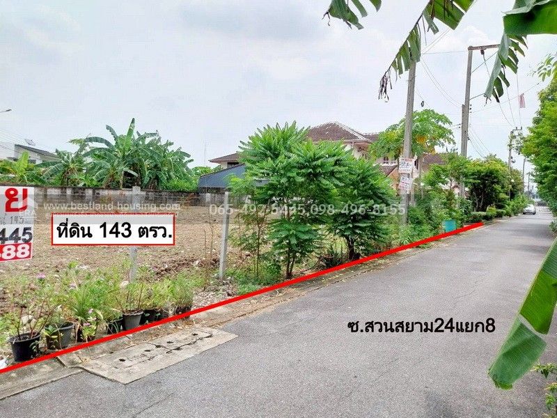 ขายหรือให้เช่า ที่ดิน 143 ตรว. ซ.สวนสยาม24แยก4 แปลงมุม 2 ด้าน ใกล้ถนนเสรีไทย เพียง 700เมตร