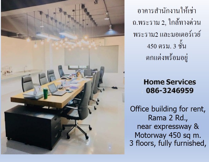 อาคารสำนักงานให้เช่า ถ.พระราม 2, 450 ตรม. 3 ชั้น ตกแต่งพร้อมอยู่ ใกล้ทางด่วนพระราม2 และมอเตอร์เวย์