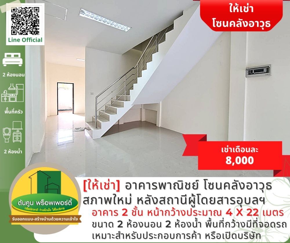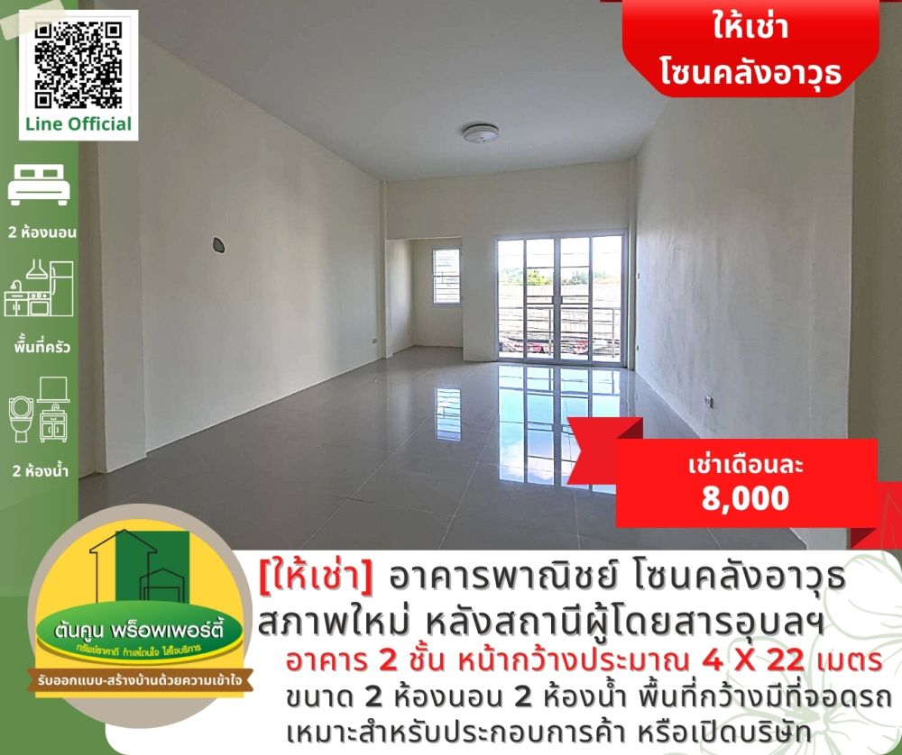 [ให้เช่า] อาคารพาณิชย์ 2 ชั้น โซนคลังอาวุธ สภาพใหม่ ติดถนนเส้นสถานีผู้โดยสารอุบลฯ