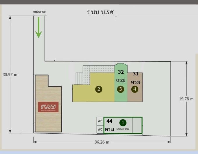3. รายละเอียด : พื้นที่อยู่ในอาคารสไตล์วินเทจ 2 ชั้น มีพื้นที่ 31,32,96 ตรม.อยู่ชั้น 1 เหมาะสำหรับ ร้านอาหาร (มีดนตรี), ร้านค้า อื่นๆ (ยกเว้นร้านกาแฟมีแล้ว)