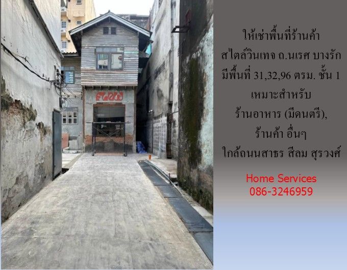 ให้เช่าพื้นที่ร้านค้าสไตล์วินเทจ ถ.นเรศ บางรัก มี 31,32,96 ตรม. อยู่ชั้น 1 เหมาะสำหรับ ร้านอาหาร (มีดนตรี), ร้านค้า อื่นๆ ใกล้ถนนสาธร สีลม สุรวงศ์