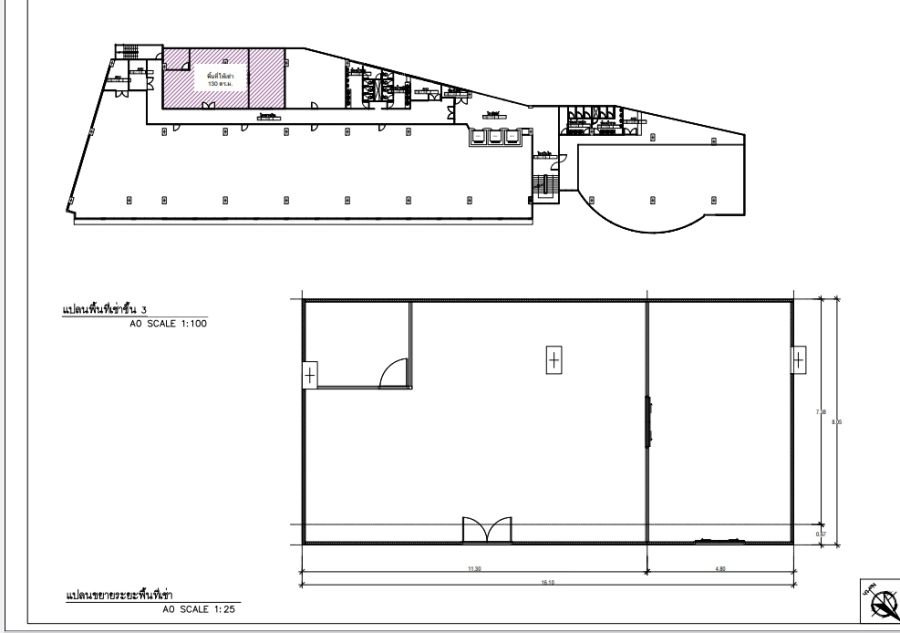 ชั้น 3 เนื้อที่ 130 ตารางเมตร ค่าเช่าเดือนละ71,500 บาท(550 บาท/ตารางเมตร/เดือน)