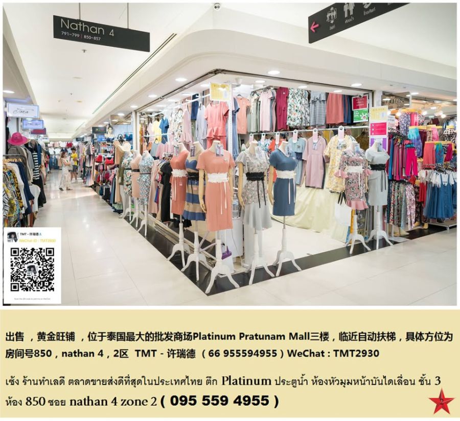 位于泰国最大批发商场——Platinum Pratunam Mall 三楼,靠近自动扶梯,位置优越,人流量大。