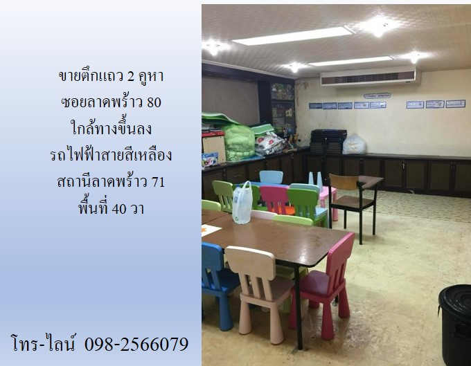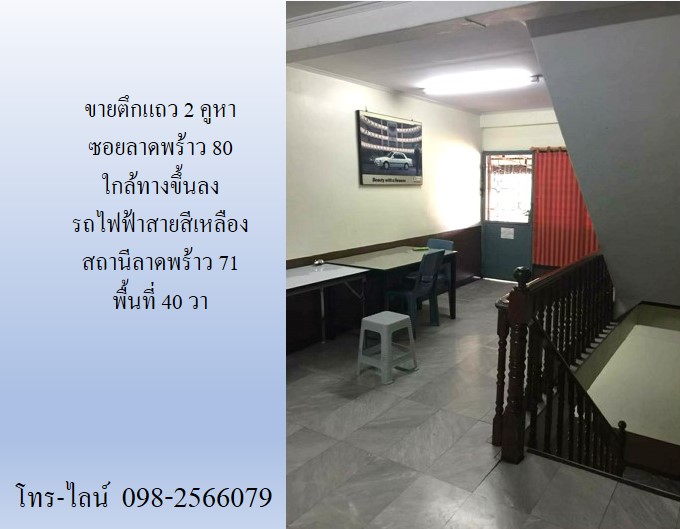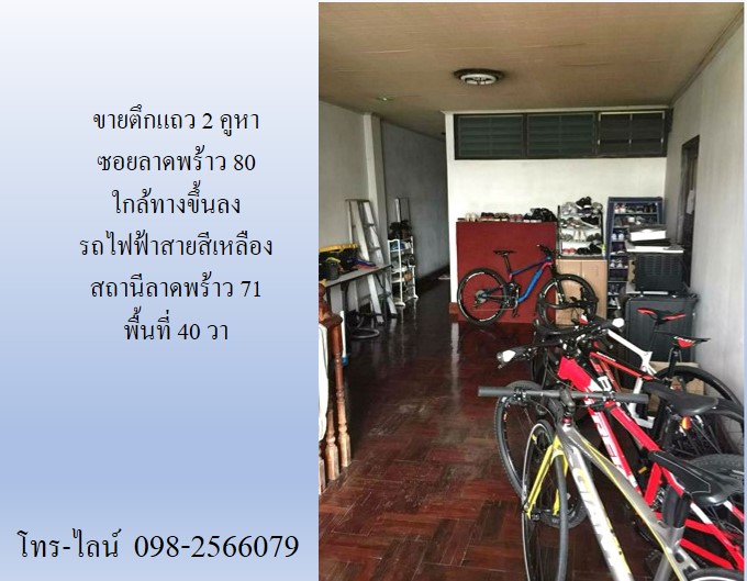 ขายตึกแถว 2 คูหา ซอยลาดพร้าว 80 ใกล้ทางขึ้นลง รถไฟฟ้าสายสีเหลือง สถานีลาดพร้าว 71 พื้นที่ 40 วา 4 นอน 4 น้ำ